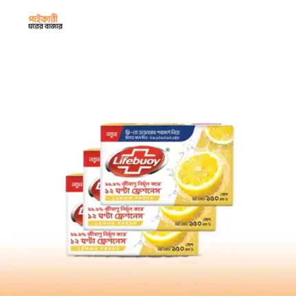লাইফবয় স্কিন ক্লিনজিং সোপ বার লেমন ফ্রেশ ১৫০ গ্রাম (বান্ডেল অফ ৩) | Lifebuoy Skin Cleansing Soap Bar Lemon Fresh 150gm