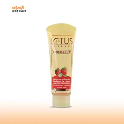 লোটাস হার্বালস বেরিস্ক্রাব স্ট্রবেরি এবং অ্যালোভেরা এক্সফোলিয়েটিং ফেস ওয়াশ (১২০ গ্রাম) | Lotus Herbals Berryscrub Strawberry and Aloe Vera Exfoliating Face Wash (120gm)