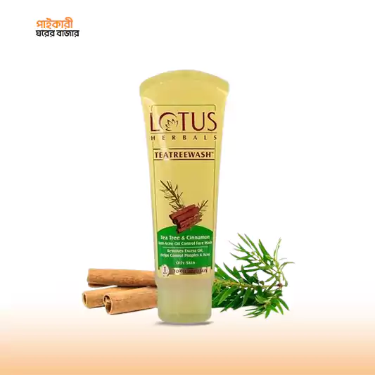 লোটাস হার্বালস টিট্রিওয়াশ টি ট্রি অ্যান্ড সিনামন অ্যান্টি-একনে অয়েল কন্ট্রোল ফেস ওয়াশ (১২০ গ্রাম) | Lotus Herbals Tea Tree and Cinnamon Anti-Acne Oil Control Face Wash