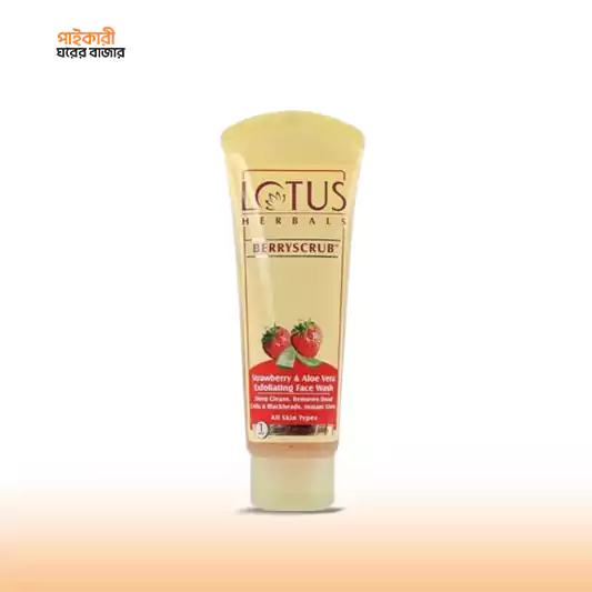 লোটাস হার্বালস বেরিস্ক্রাব স্ট্রবেরি এবং অ্যালোভেরা এক্সফোলিয়েটিং ফেস ওয়াশ (১২০ গ্রাম) | Lotus Herbals Berryscrub Strawberry and Aloe Vera Exfoliating Face Wash (120gm)