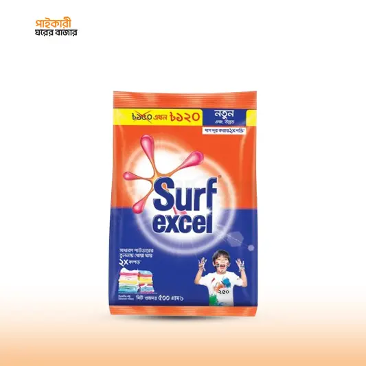 বিশ্বস্ত ব্র্যান্ড সার্ফ এক্সেল, ৫০০ গ্রাম মাত্র ১১০ টাকায়। আপনার কাপড় হবে একদম পরিষ্কার এবং দাগ মুক্ত।